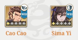 Cao Cao and Sima Yi form the core of the Shield-Support squad (consists of Defender Heroes and Supporter Heroes). When three Supporter Heroes are deployed, Cao Cao's attacks can restore Rage to all Supporter Heroes, whereas Sima Yi is a tank role with a decent damage output. The Tank-Support squad excels in PVP. With some non-SSR Supporter and Defender Heroes joining Cao Cao and Sima Yi, the squad is quite formidable.
