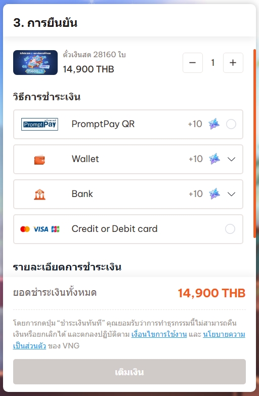 - ผ่านลิงก์โดยตรง : Visit https://shop.vnggames.com/th/game/samkokfantasyth