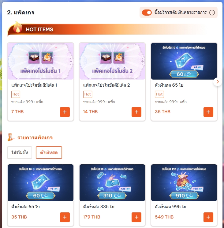 ซื้อแพ็คเกจเติมเงินที่ต้องการ :